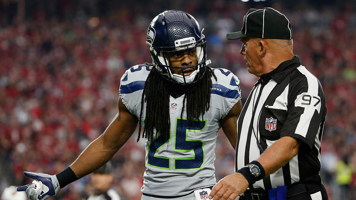 Photo Credit: GLENDALE, AZ - JANUARY 03: Cornerback Richard Sherman #25 of the Seattle Seahawks argues with side judge Tom Hill #97 in the first quarter of the NFL game against the Arizona Cardinals at the University of Phoenix Stadium on January 3, 2016 in Glendale, Arizona. (Photo by Christian Petersen/Getty Images)