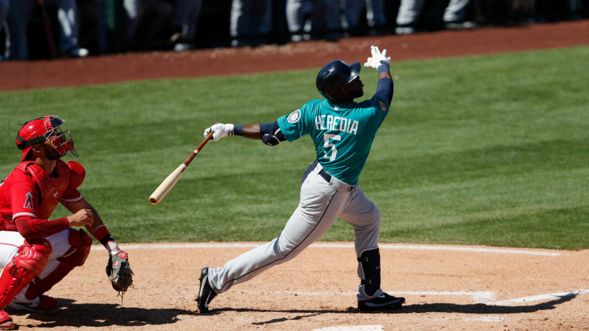 Photo Credit (ABOVE): TEMPE, AZ - MARCH 12: Guillermo Heredia #5 of the Seattle Mariners bats in the third inning against the Los Angeles Angels of Anaheim during a spring training game at Tempe Diablo Stadium on March 12, 2017 in Tempe, Arizona. (Photo by Tim Warner/Getty Images)