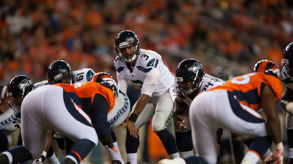 Photo Credit: DENVER, CO - AUGUST 07: Quarterback Russell Wilson #3 of the Seattle Seahawks waits for the snap as he runs the offense against the Denver Broncos during preseason action at Sports Authority Field at Mile High on August 7, 2014 in Denver, Colorado. (Photo by Dustin Bradford/Getty Images)