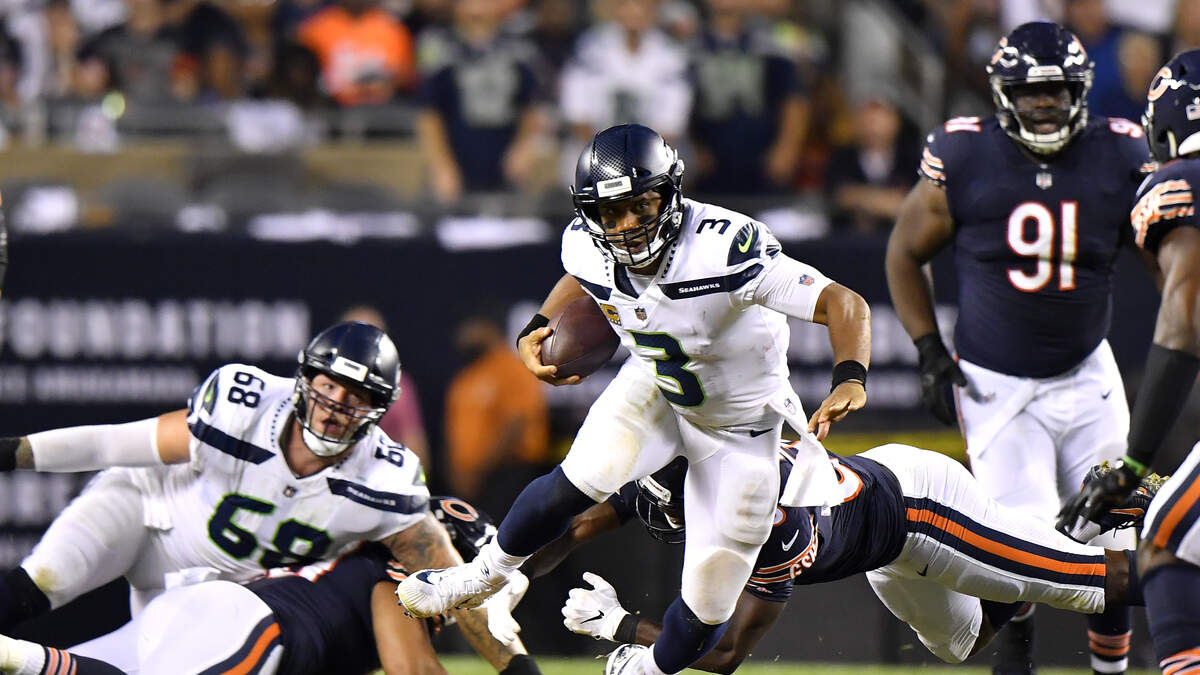 Photo Credit: CHICAGO, IL - SEPTEMBER 17: Quarterback Russell Wilson #3 of the Seattle Seahawks carries the football in the first half against the Chicago Bears at Soldier Field on September 17, 2018 in Chicago, Illinois. (Photo by Quinn Harris/Getty Images)