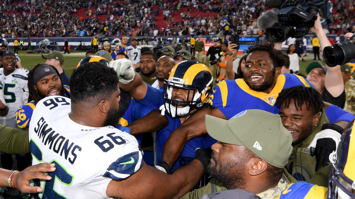 Move over San Francisco 49ers, there's a new rival for the Seahawks and it is the Los Angeles Rams. For the second time this season the Seahawks came down to the wire with the Rams, but ultimately came up short, 36-31. During yesterday's game there were several personal fouls on both teams involving both offensive and defensive lines, but it was Aaron Donald and Justin Britt who continued to get chippy with each other.