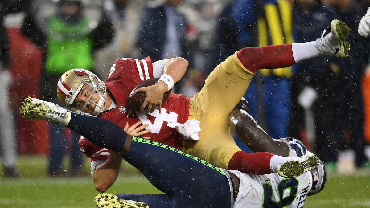 Photo Credit: SANTA CLARA, CA - DECEMBER 16: Nick Mullens #4 of the San Francisco 49ers is sacked by Jarran Reed #90 of the Seattle Seahawks during their NFL game at Levi's Stadium on December 16, 2018 in Santa Clara, California. (Photo by Thearon W. Henderson/Getty Images)