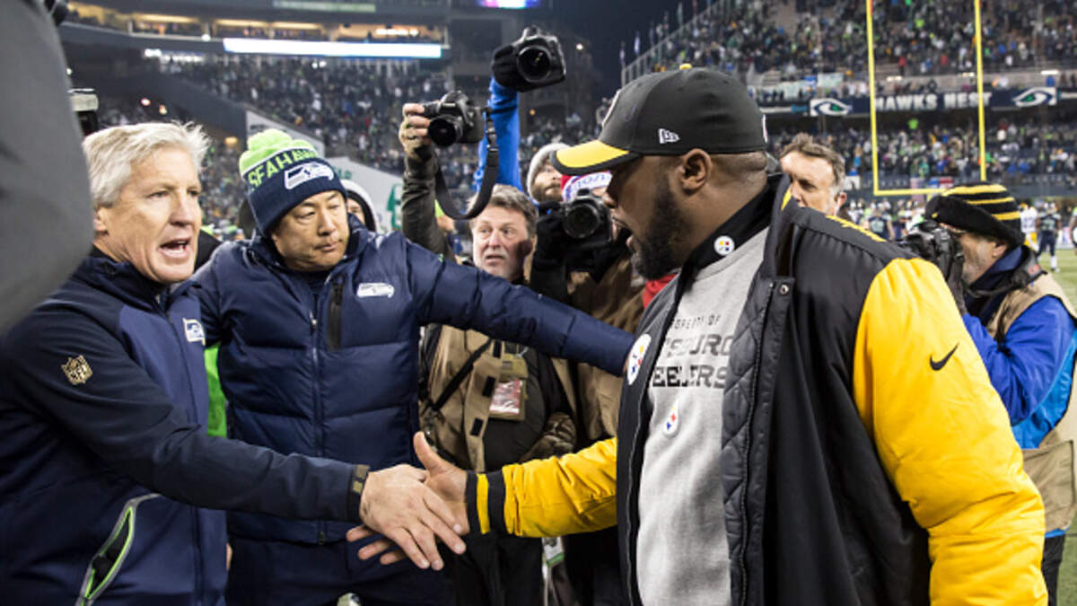 - The Steelers take their next drive into field goal range, but on third down, Ben Roethlisberger throws a pass to Tedric Thompson in the flat. Thompson takes it to the house for a pick six and the Hawks lead 14-0!