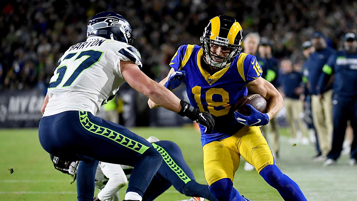 Photo Credit: LOS ANGELES, CALIFORNIA - DECEMBER 08: Wide receiver Cooper Kupp #18 of the Los Angeles Rams carries for a first against linebacker Cody Barton #57 of the Seattle Seahawks during the game first down at Los Angeles Memorial Coliseum on December 08, 2019 in Los Angeles, California. (Photo by Kevork Djansezian/Getty Images)