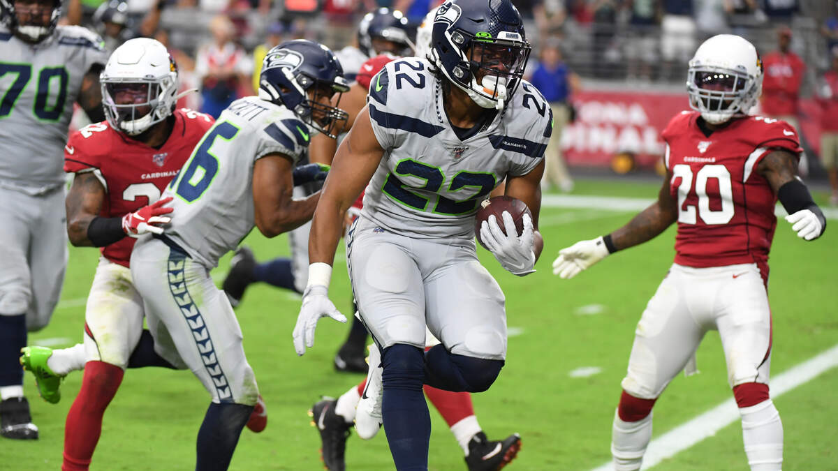 Photo Credit: GLENDALE, ARIZONA - SEPTEMBER 29: CJ Prosise #22 of the Seattle Seahawks scores a rushing touchdown during the second half of a game against the Arizona Cardinals at State Farm Stadium on September 29, 2019 in Glendale, Arizona. Seahawks won 27-10. (Photo by Norm Hall/Getty Images)