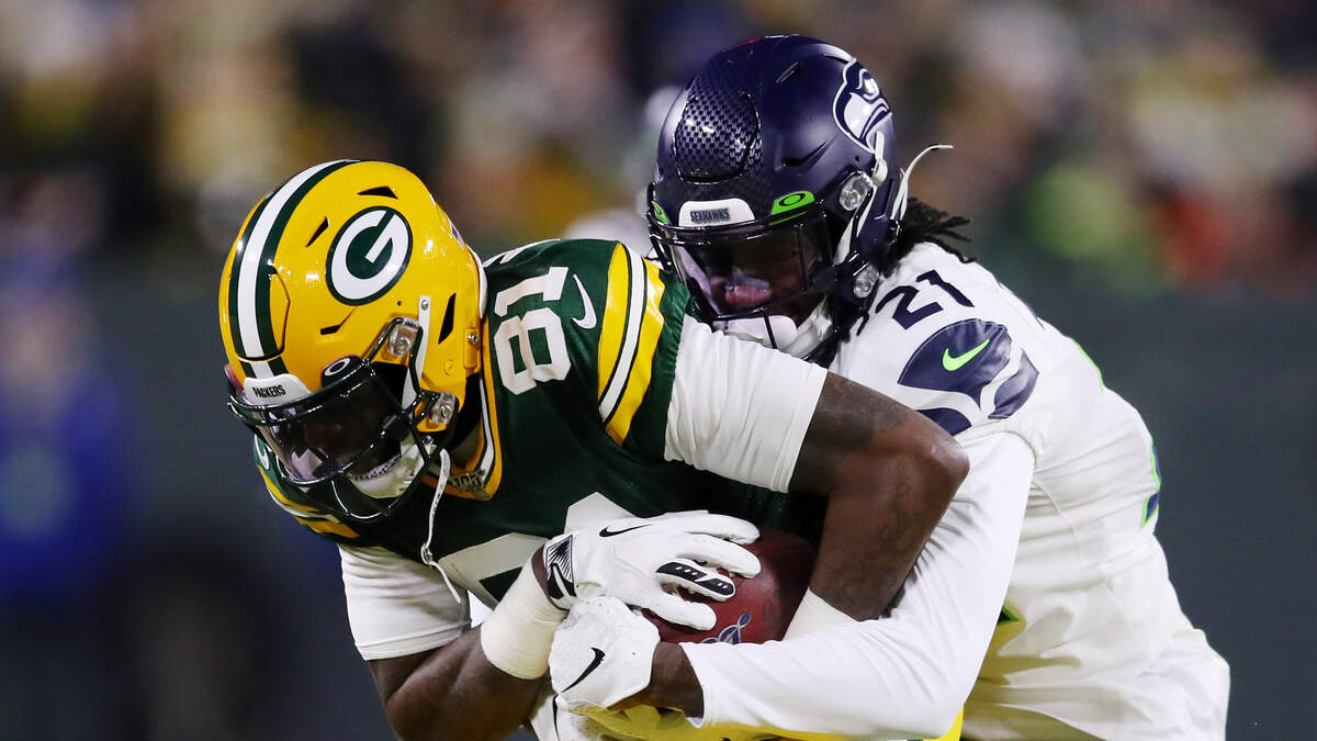 Photo Credit: GREEN BAY, WISCONSIN - JANUARY 12: Tre Flowers #21 of the Seattle Seahawks tackles Geronimo Allison #81 of the Green Bay Packers during the first half in the NFC Divisional Playoff game at Lambeau Field on January 12, 2020 in Green Bay, Wisconsin. (Photo by Gregory Shamus/Getty Images)