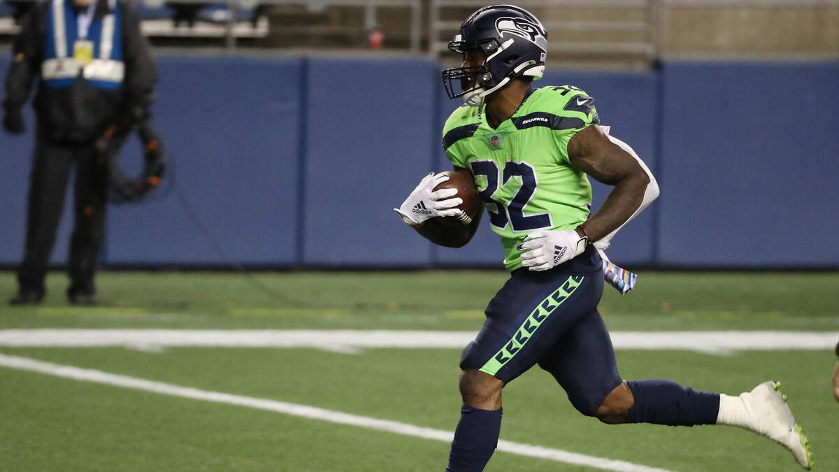 Photo Credit: SEATTLE, WASHINGTON - OCTOBER 11: Chris Carson #32 of the Seattle Seahawks scores a touchdown against the Minnesota Vikings during the third quarter at CenturyLink Field on October 11, 2020 in Seattle, Washington. (Photo by Abbie Parr/Getty Images)