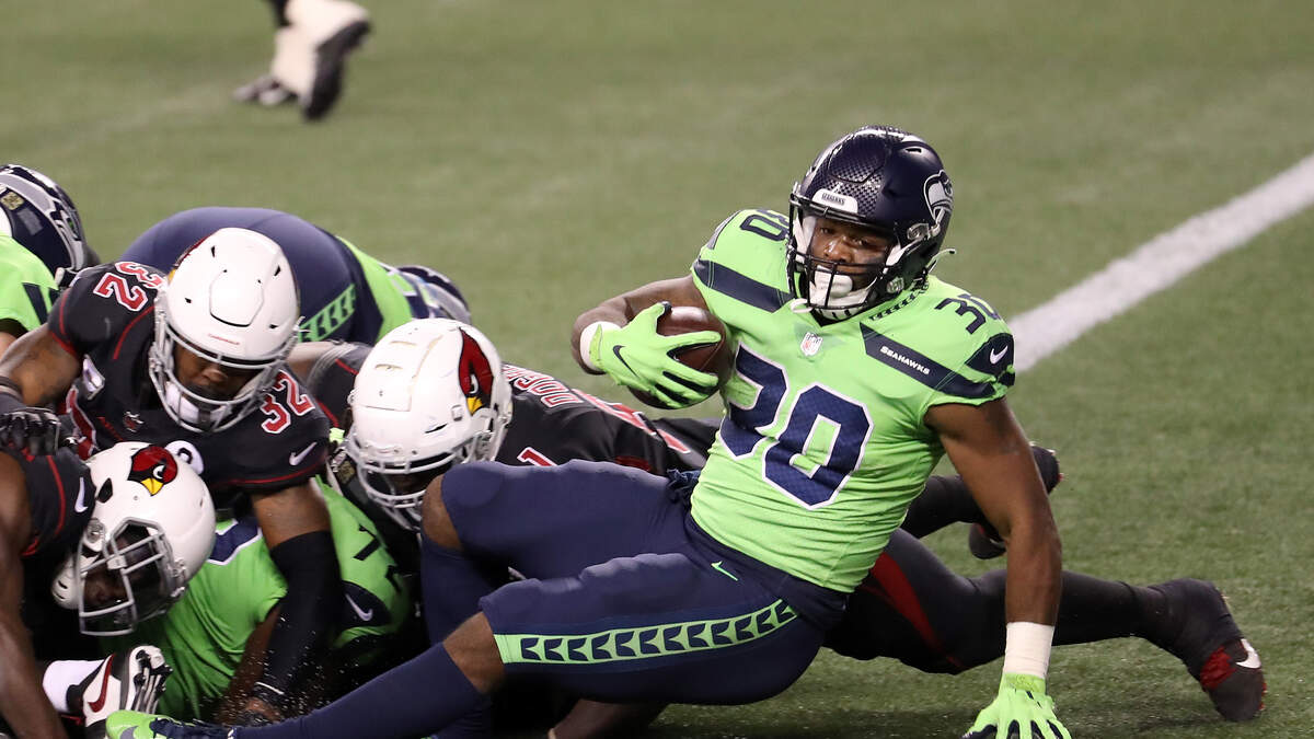 Photo Credit: SEATTLE, WASHINGTON - NOVEMBER 19: Carlos Hyde #30 of the Seattle Seahawks runs in for a touchdown against the Arizona Cardinals in the third quarter at Lumen Field on November 19, 2020 in Seattle, Washington. (Photo by Abbie Parr/Getty Images)