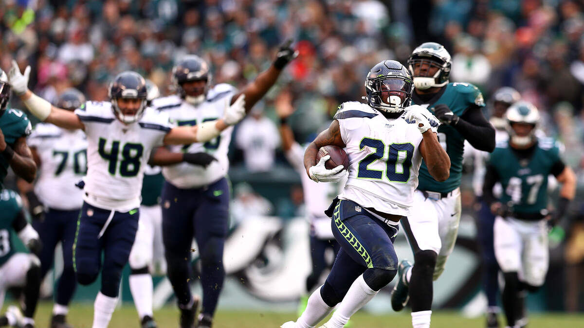 Photo Credit: PHILADELPHIA, PENNSYLVANIA - NOVEMBER 24: Rashaad Penny #20 of the Seattle Seahawks rushes for a fourth quarter touchdown against the Philadelphia Eagles at Lincoln Financial Field on November 24, 2019 in Philadelphia, Pennsylvania. (Photo by Mitchell Leff/Getty Images)