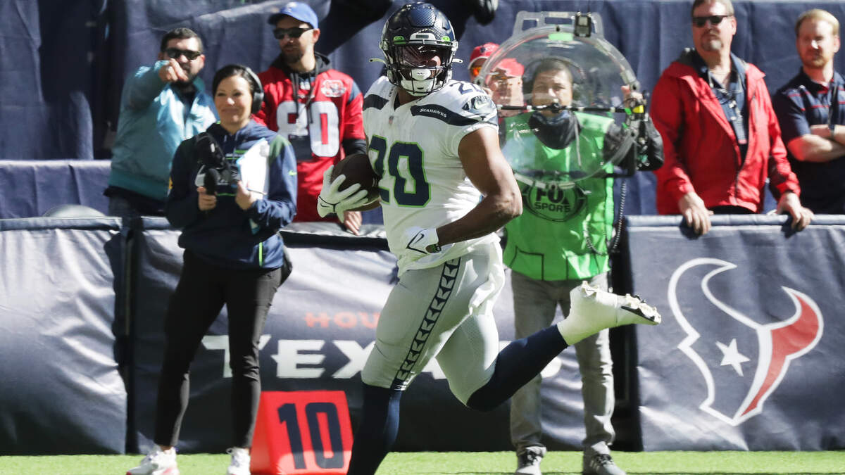 Photo Credit: HOUSTON, TEXAS - DECEMBER 12: Rashaad Penny #20 of the Seattle Seahawks runs the ball for a touchdown during the first quarter against the Houston Texans at NRG Stadium on December 12, 2021 in Houston, Texas. (Photo by Bob Levey/Getty Images)