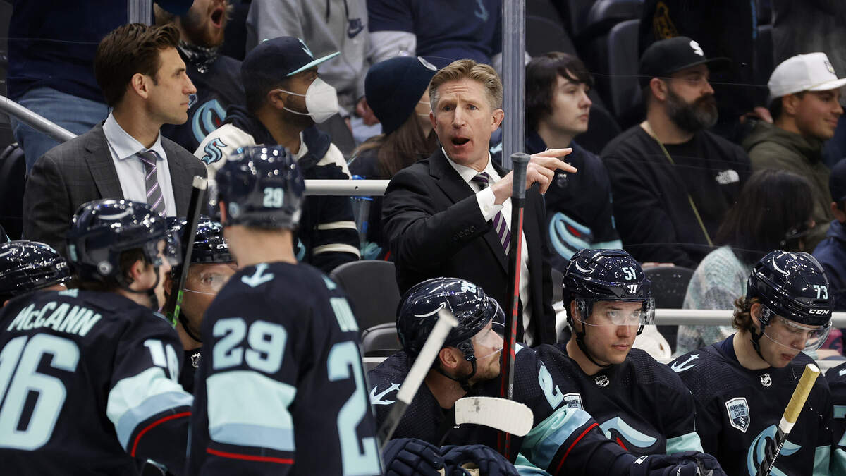 SEATTLE, WASHINGTON - MARCH 30: Head coach Dave Hakstol of the Seattle Kraken reacts during the third period against the Vegas Golden Knights at Climate Pledge Arena on March 30, 2022 in Seattle, Washington. (Photo by Steph Chambers/Getty Images)Photo: Getty Images