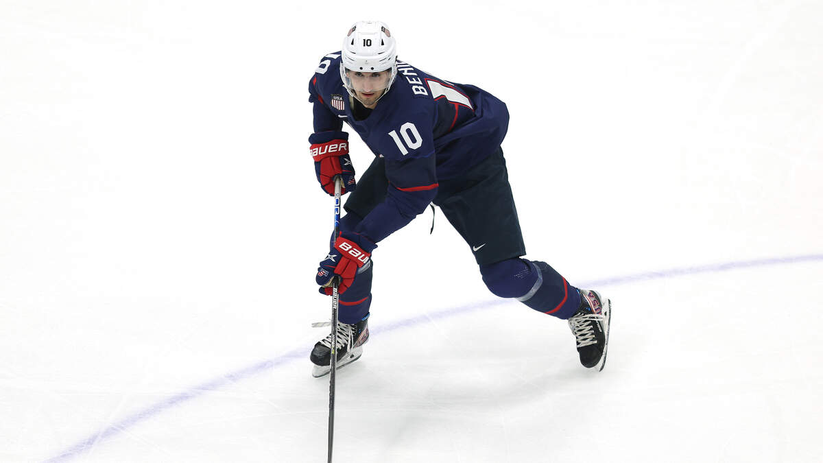 BEIJING, CHINA - FEBRUARY 16: Matty Beniers #10 of Team United States controls the puck in the first period during the Men’s Ice Hockey Quarterfinal match between Team United States and Team Slovakia on Day 12 of the Beijing 2022 Winter Olympic Games at National Indoor Stadium on February 16, 2022 in Beijing, China. (Photo by Richard Heathcote/Getty Images)Photo: Getty Images