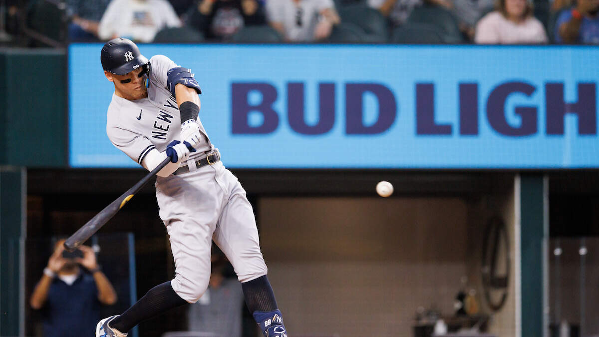 Judge hit a leadoff homer in the first inning of Yankees' second game in a doubleheader against the Rangers on October 4.