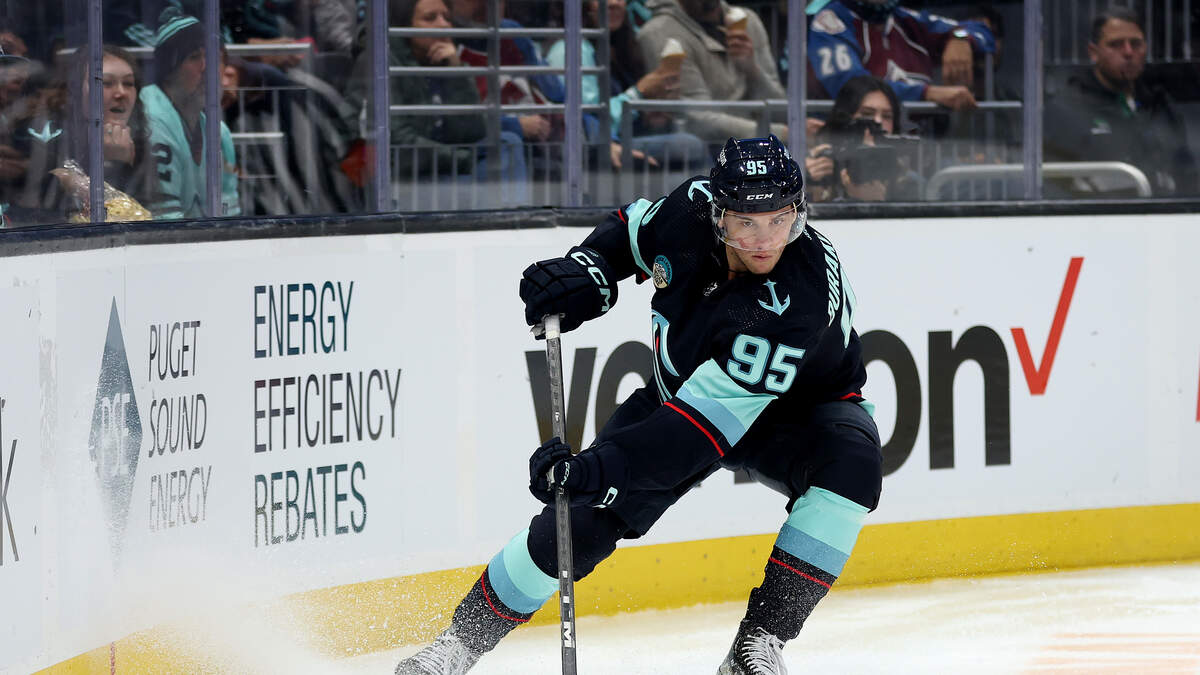 SEATTLE, WASHINGTON - OCTOBER 17: Andre Burakovsky #95 of the Seattle Kraken skates against the Colorado Avalanche during the second period at Climate Pledge Arena on October 17, 2023 in Seattle, Washington. (Photo by Steph Chambers/Getty Images)Photo: Steph Chambers / Getty Images Sport / Getty Images