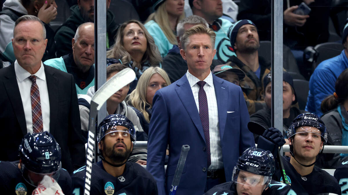 SEATTLE, WASHINGTON - OCTOBER 17: Head coach Dave Hakstol of the Seattle Kraken looks on during the third period against the Colorado Avalanche at Climate Pledge Arena on October 17, 2023 in Seattle, Washington. (Photo by Steph Chambers/Getty Images)Photo: Steph Chambers / Getty Images Sport / Getty Images