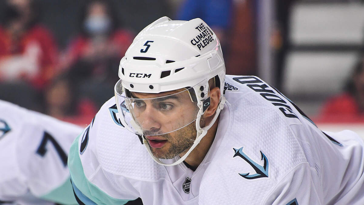 CALGARY, AB - SEPTEMBER 9: Mark Giordano #5 of the Seattle Kraken in action against the Calgary Flames during an NHL game at Scotiabank Saddledome on September 9, 2021 in Calgary, Alberta, Canada. (Photo by Derek Leung/Getty Images)Photo: Getty Images