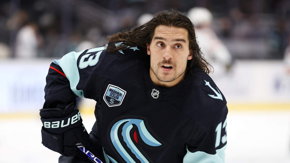 SEATTLE, WASHINGTON - DECEMBER 03: Brandon Tanev #13 of the Seattle Kraken warms up before the game against the Edmonton Oilers at Climate Pledge Arena on December 03, 2021 in Seattle, Washington. (Photo by Steph Chambers/Getty Images)Photo: Getty Images