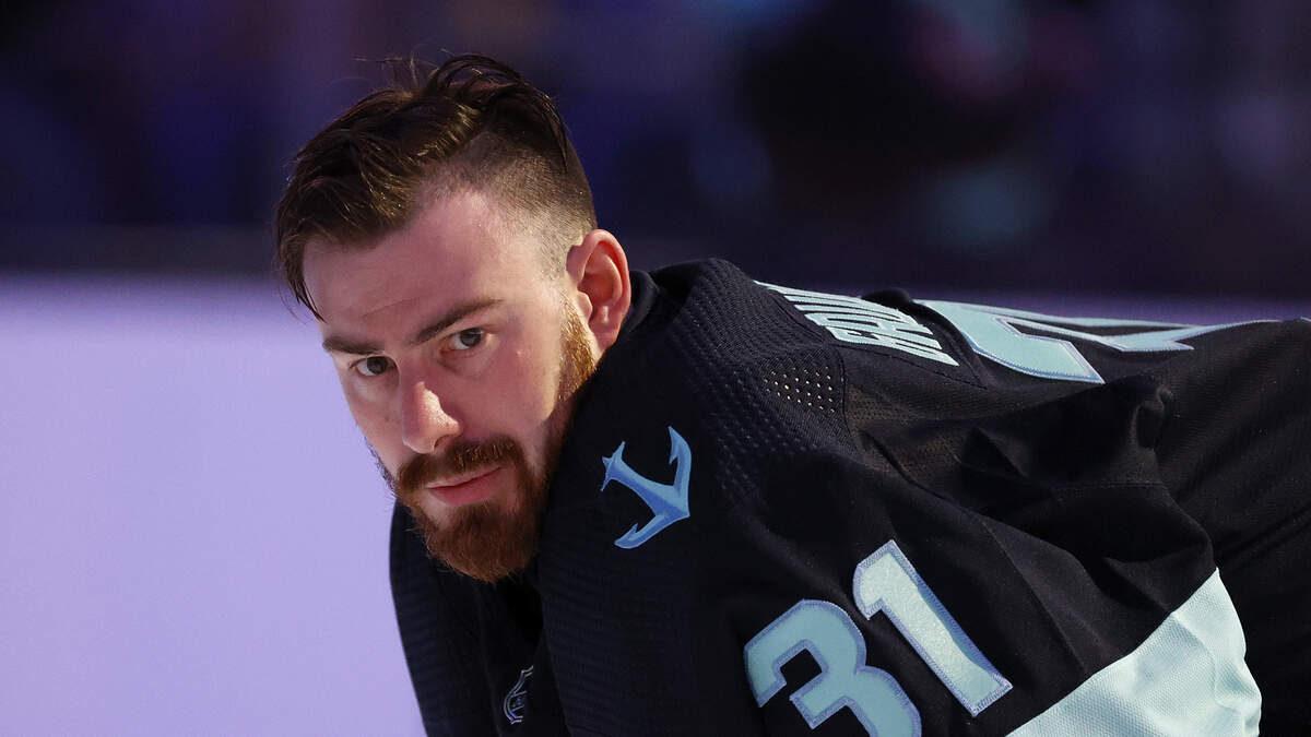 SEATTLE, WASHINGTON - APRIL 01: Philipp Grubauer #31 of the Seattle Kraken looks on before the game against the Vegas Golden Knights at Climate Pledge Arena on April 01, 2022 in Seattle, Washington. (Photo by Steph Chambers/Getty Images)Photo: Getty Images