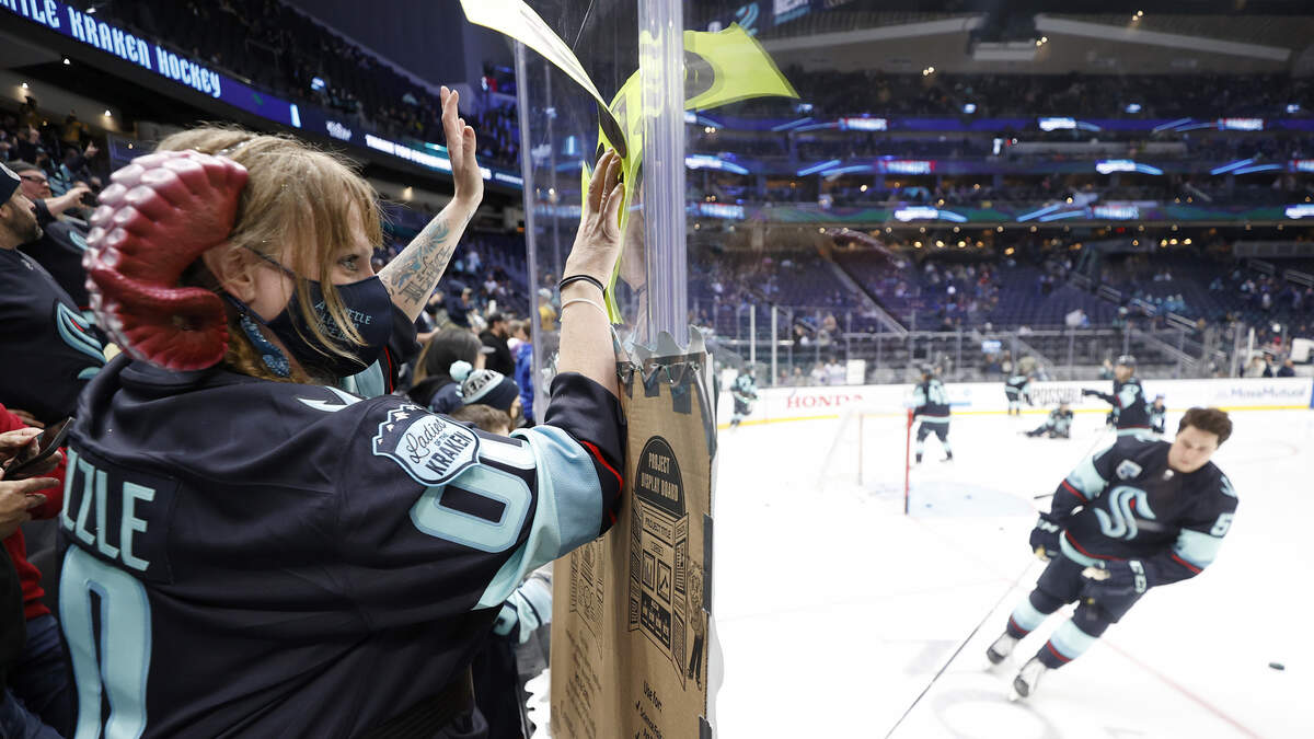 SEATTLE, WASHINGTON - MARCH 30: A fan cheers before the game between the Seattle Kraken and the Vegas Golden Knights at Climate Pledge Arena on March 30, 2022 in Seattle, Washington. (Photo by Steph Chambers/Getty Images)Photo: Getty Images