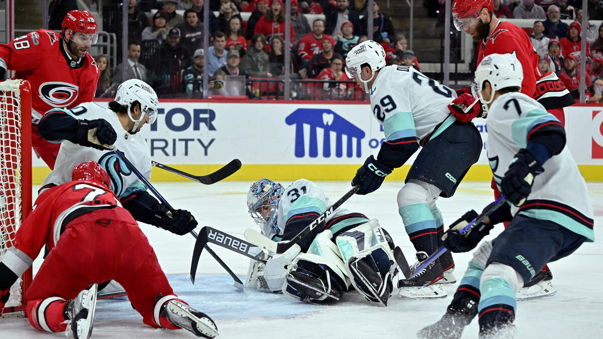 The Carolina Hurricanes, creating a flurry with a two-goal lead in the opening 20 minutes and eventually, three unanswered goals, held off the Kraken 3-2 in the road trip finale before a crowd of 18,680 at PNC Arena on Thursday.