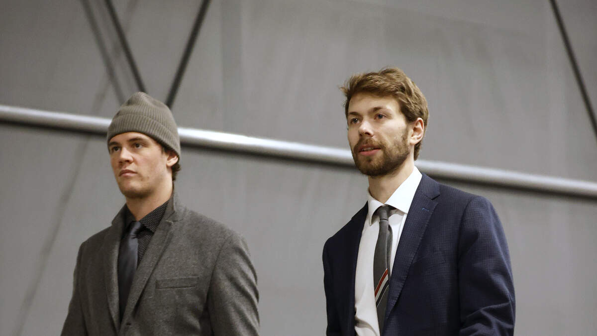 SEATTLE, WASHINGTON - DECEMBER 28: Andre Burakovsky #95 and Oliver Bjorkstrand #22 of the Seattle Kraken arrive before the game against the Calgary Flames at Climate Pledge Arena on December 28, 2022 in Seattle, Washington. (Photo by Steph Chambers/Getty Images)Photo: Getty Images