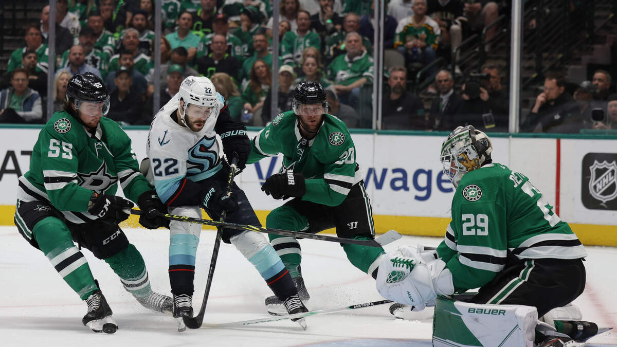 Jared McCann earned his first career playoff goal, in his second game back from injury, while Dallas’ top line of Roope Hintz, Jason Robertson and Joe Pavelski combined for eight points. Hintz scored twice and earned an assist.