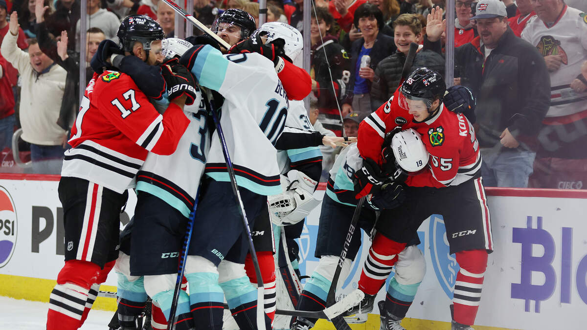 Matty Beniers, Alex Wennberg, and Tye Kartye scored for the Kraken, who lost Jaden Schwartz early in the third period after taking a shot off his foot. Boris Katchouk and Jason Dickinson staked Chicago out to a 2-0 lead before Beniers and Wennberg tied the game late in the first period, scoring 4:40 apart.