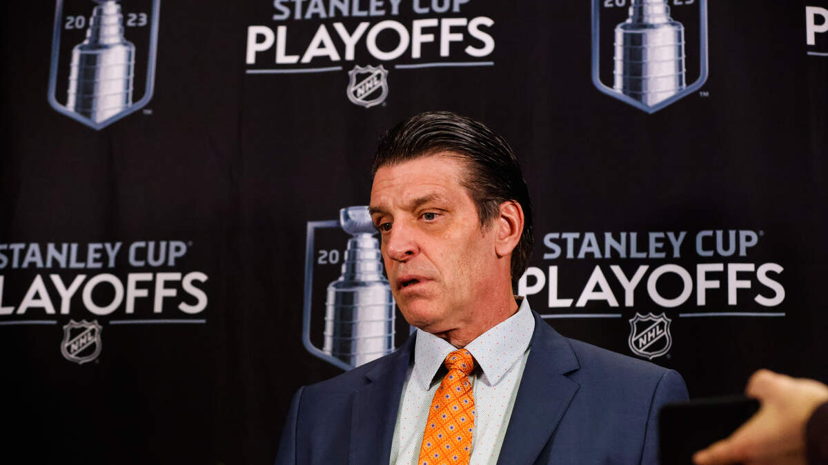 RALEIGH, NC - APRIL 17: New York Islanders Head Coach Lane Lambert talks to the press after the game against Carolina Hurricanes of Eastern Conference Game One of the First Round of the 2023 Stanley Cup Playoffs at PNC Arena on April 17, 2023 in Raleigh, North Carolina. (Photo by Jaylynn Nash/Getty Images)Photo: Jaylynn Nash / Getty Images Sport / Getty Images